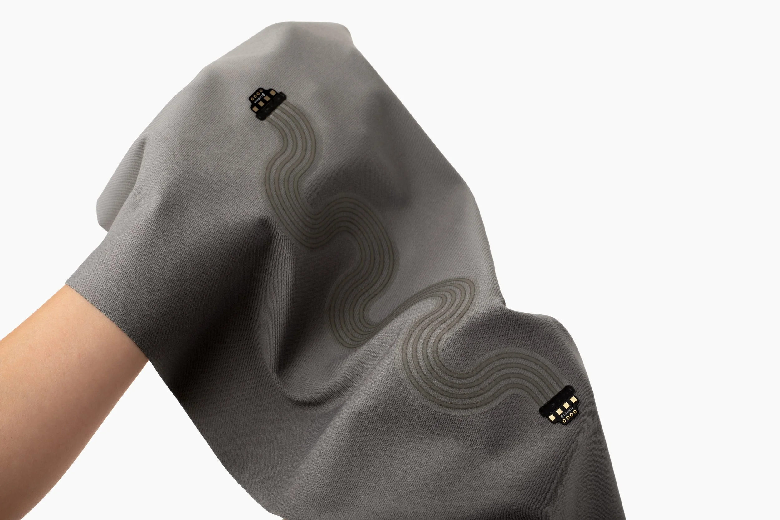 The Loomia 5-loop serpentine stretchable wire is our latest version of a serpentine bus. The current version comes laminated to a piece of stretch knit fabric and we are offering 2 fabric options. As long as the connection points are properly encapsulated, this sample can be used for washable applications. This part can be ironed onto your substrate of choice at about 200 degrees F. While a heat press makes application easy, it can also be applied with a household iron.