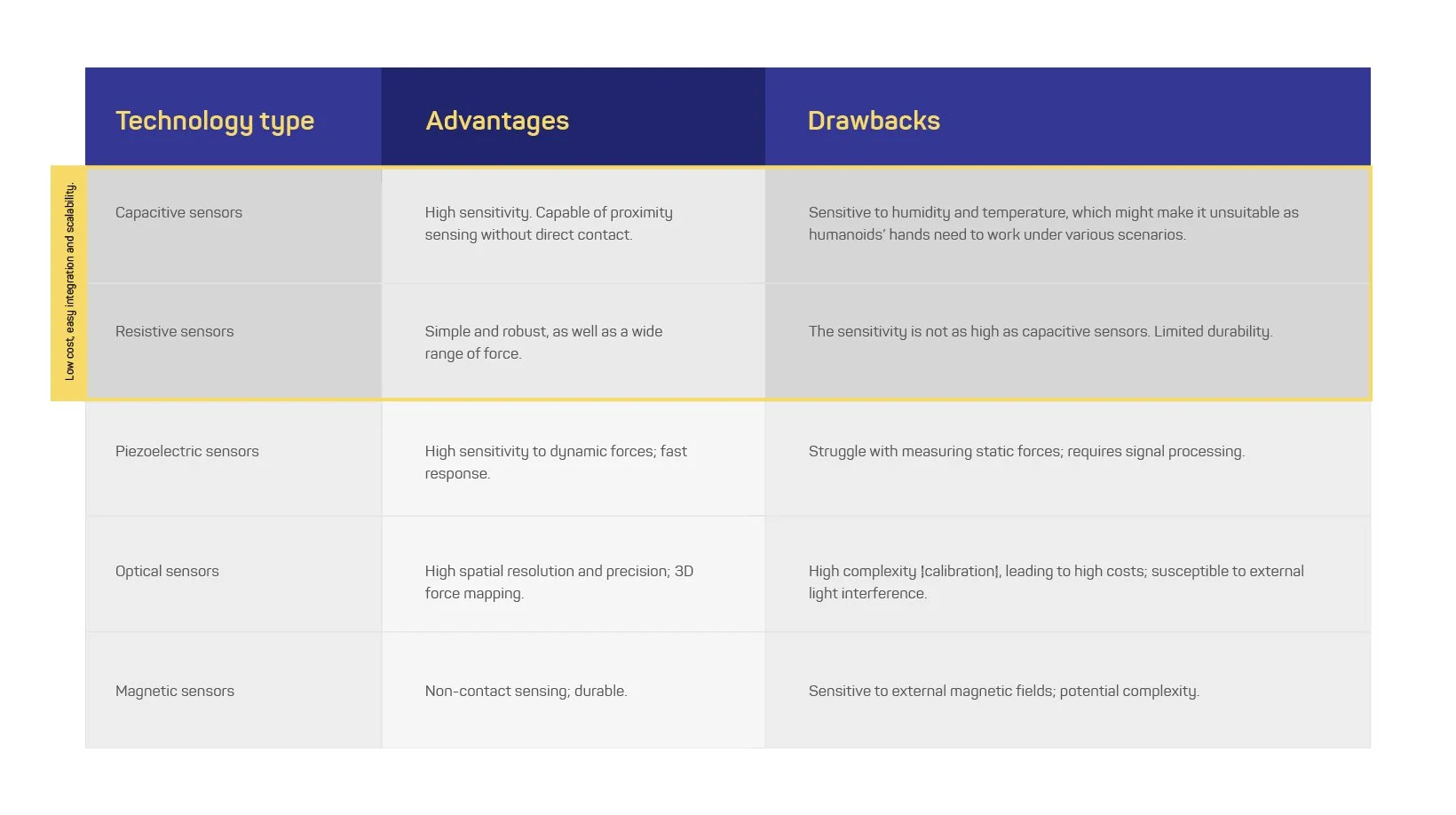 • The biggest strength of a piezoresistive tactile sensor is its simplicity and cost-effectiveness.